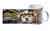Dieses Tassenmotiv erinnert dich daran, wie wertvoll deine Zeit ist. Der Hund mit seiner charmanten Uhr-Mütze und ernsten Blick fordert dich auf, den Moment zu nutzen und deine Zeit mit Dingen zu füllen, die dir wirklich am Herzen liegen. Jede Sekunde zählt, und das Bild vermittelt auf humorvolle Weise die Botschaft, dass wir bewusst mit unserer Zeit umgehen sollten. Perfekt für alle, die einen kleinen Denkanstoß im Alltag gebrauchen können.